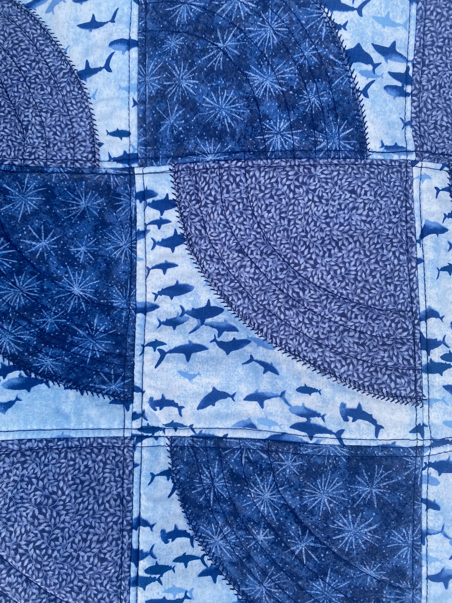 I found these two fat quarters in among a box of leftovers from an Eye Spy quilt I had made my for my son when he was a pre-schooler and decided to use them as feature prints...